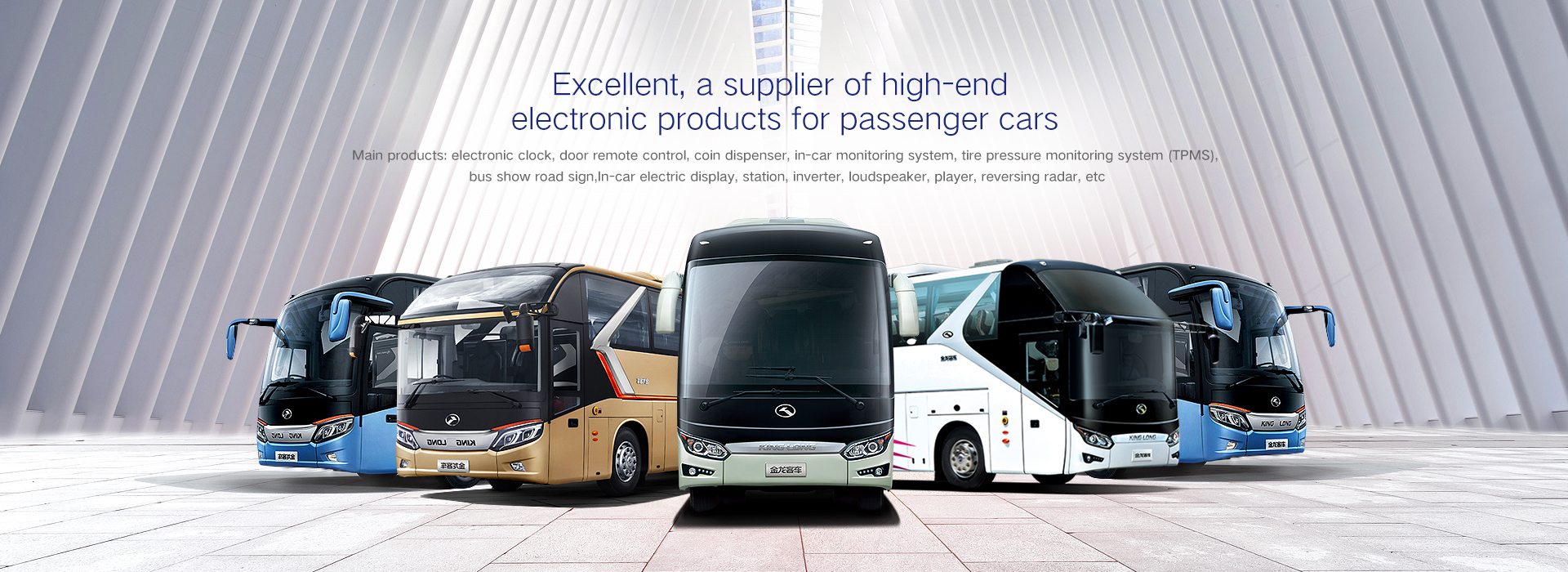 With advanced technology and excellent design and development team and capabilities, the company provides OEM and ODM services for dozens of domestic and foreign bus manufacturers. The company's main products: electronic clock, door remote control, coin machine, in-vehicle monitoring system, tire pressure monitoring system (TPMS), bus display road signs, in-car electric display, station station, car inverter, speaker, player , reversing radar, etc.